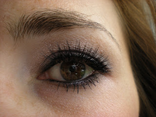 Mon make up, je le voulais simple et un brin sophistiqué aussi. J'ai suivi la technique de Beauty Blog pour réaliser ce maquillage. Tout d'abord, j'ai fait un trait assez épais au ras des cils avec un crayon noir. Je estompé le trait surtout sur l'extérieur de la paupière pour accentuer le dégradé. J'ai ensuite mis un nude irrisé pour illuminé l'oeil et j'ai également mis un peu de fard couleur prune. Pour la touche Glam, j'ai mis mes cils Shu Uemura.